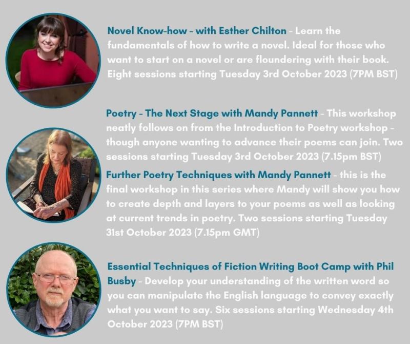 I’m delighted to be part of The Writers Bureau’s October workshops. Want to know more? Click here